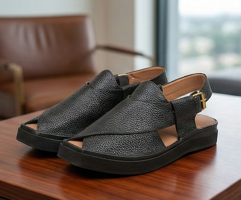 Introducing the Textured Midnight Kaptaan Chappal — a commanding reinterpretation of the iconic Kaptaan silhouette, handcrafted by master artisans in Charsadda.